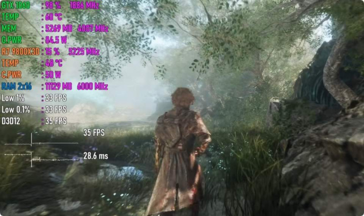 最后是新款3A游戏,降低画质、关闭光追、调整渲染比例,也能实现30-50帧的可玩帧率,虽然达不到高刷体验,但能顺利运行、体验剧情,对一张十年老卡来说,已经足够惊艳。